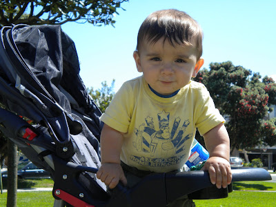 Anyway, we have discovered that Benny loves cherries this week and now officially walks (unsteadliy of course) from roomto room trying to find mommy if I happen to get out of his sight for a quick minute! He also has a new fondness for the sand at the beach and would love to lay in it if we would let him!